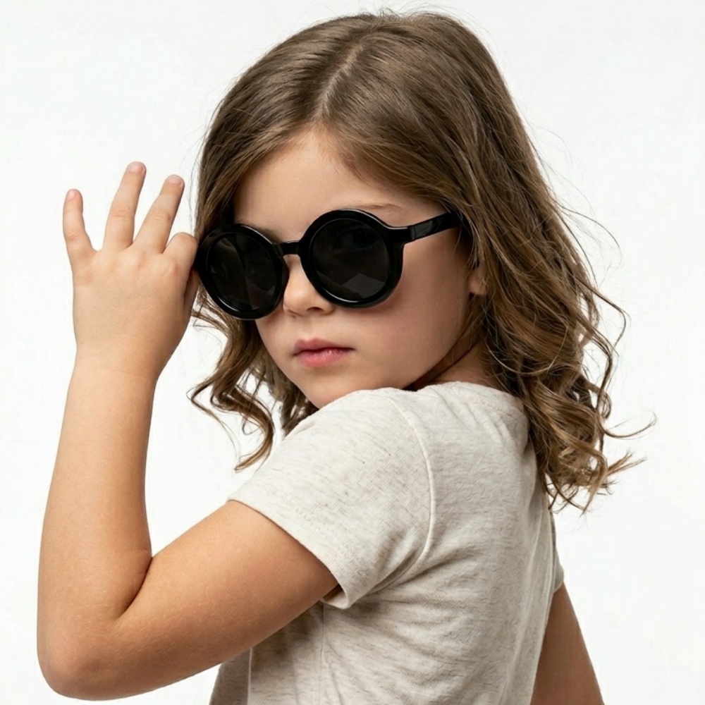 MiniMo, minik stil ikonları için tasarlandı! Tamamen yuvarlak formdaki siyah çerçevesiyle klasik görünümü eğlenceli bir dokunuşla sunan bu çocuk güneş gözlüğü, minik yüzlere tam uyum sağlar. Hafif yapısı ve güvenli materyali sayesinde çocukların gün boyu rahatça kullanabileceği şekilde üretilmiştir.