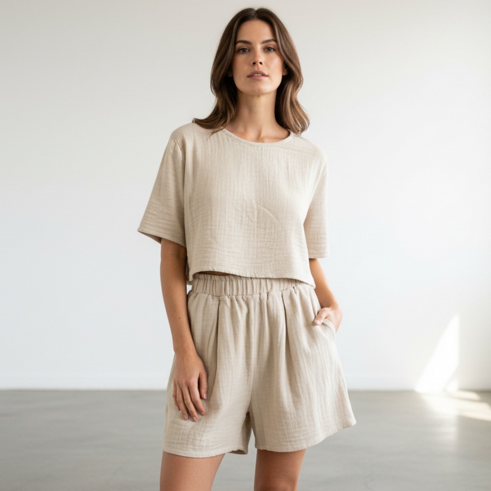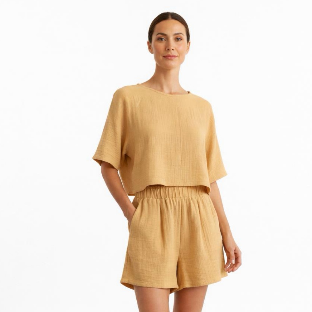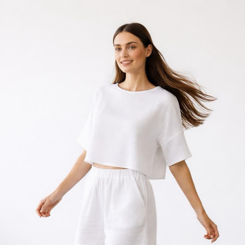 - Doğal görünüm: Kırışık dokusu kumaşın doğallığının bir parçasıdır ve ütü gerektirmez.