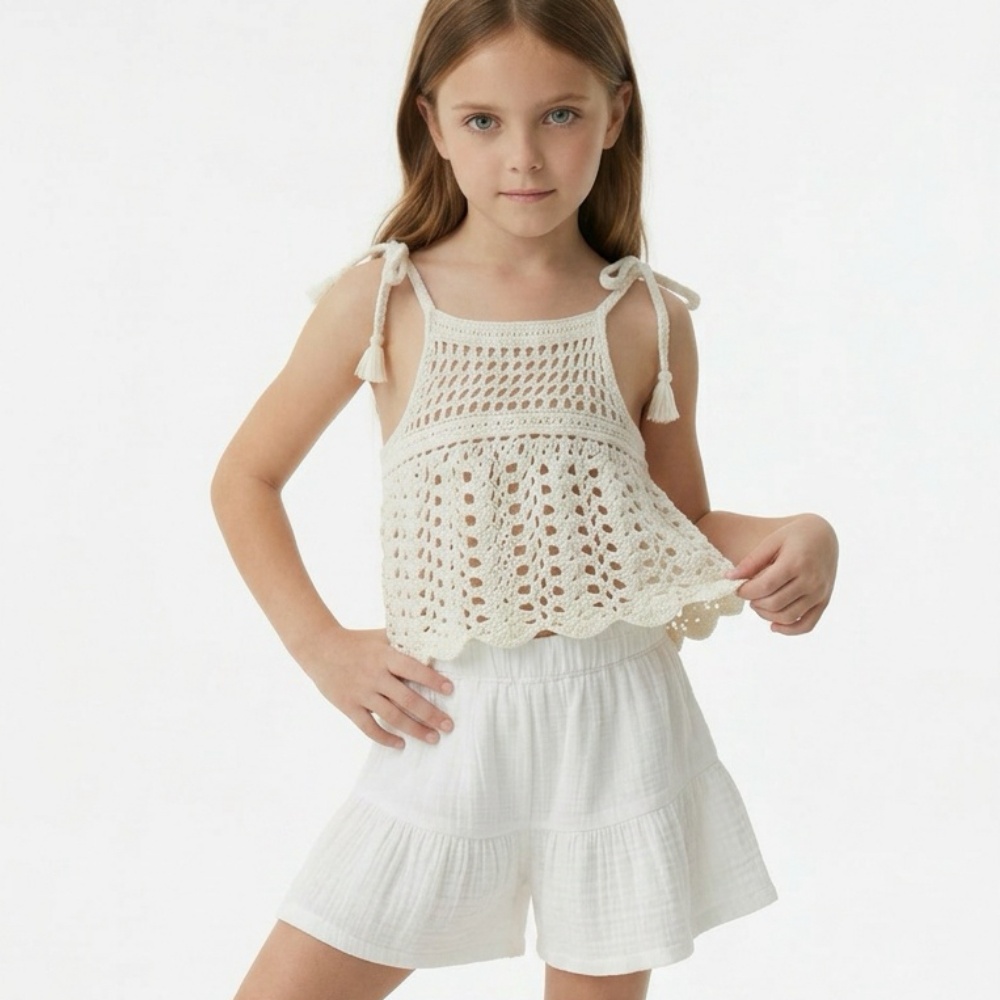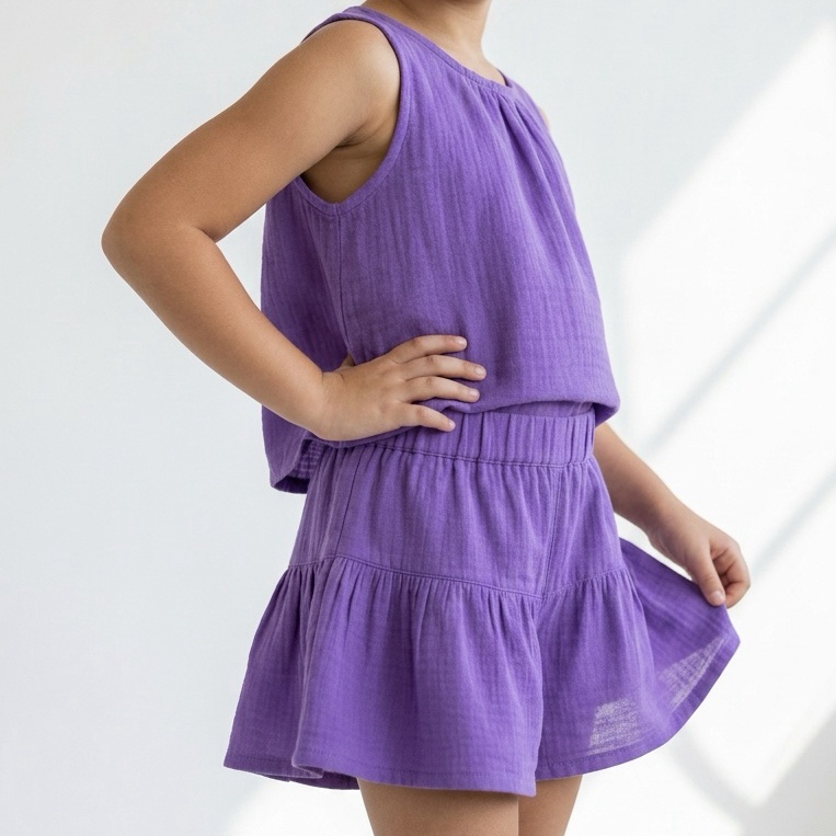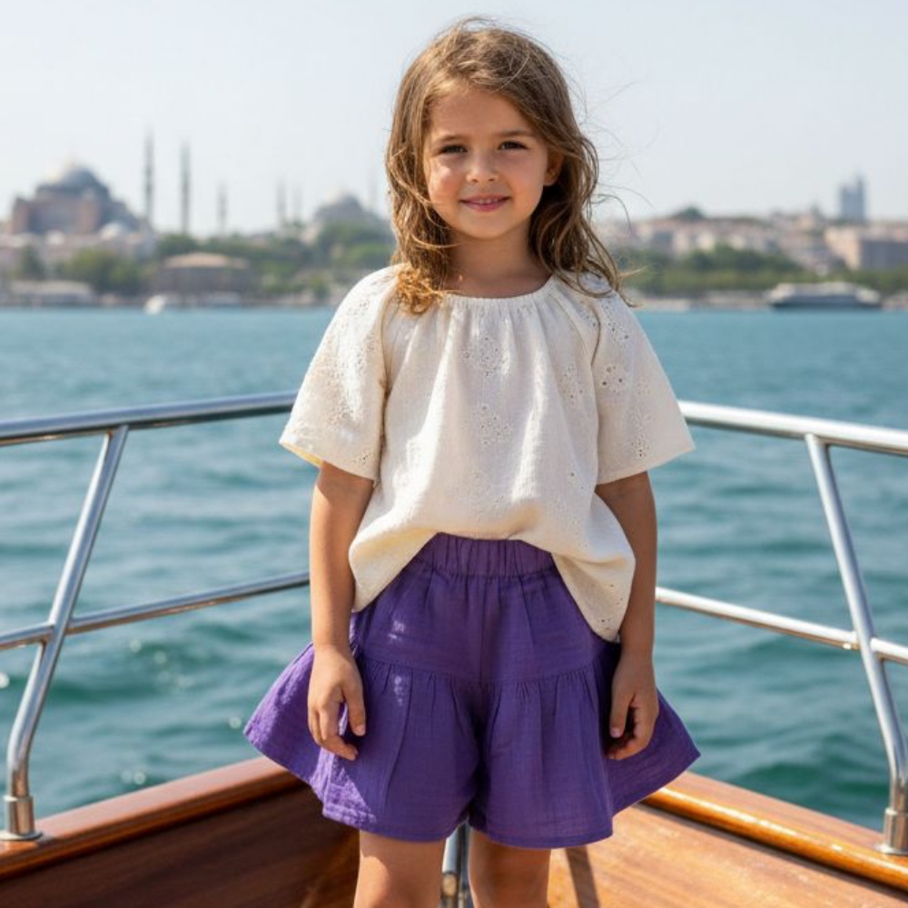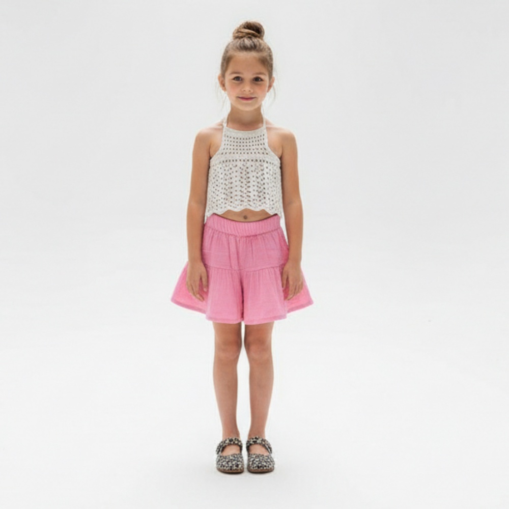 Kız Çocuk Pile Detaylı Müslin Şort