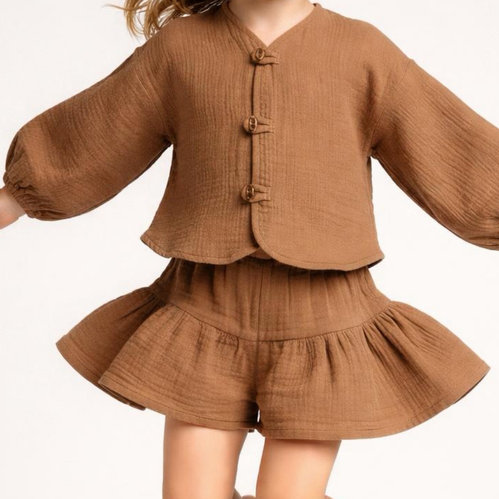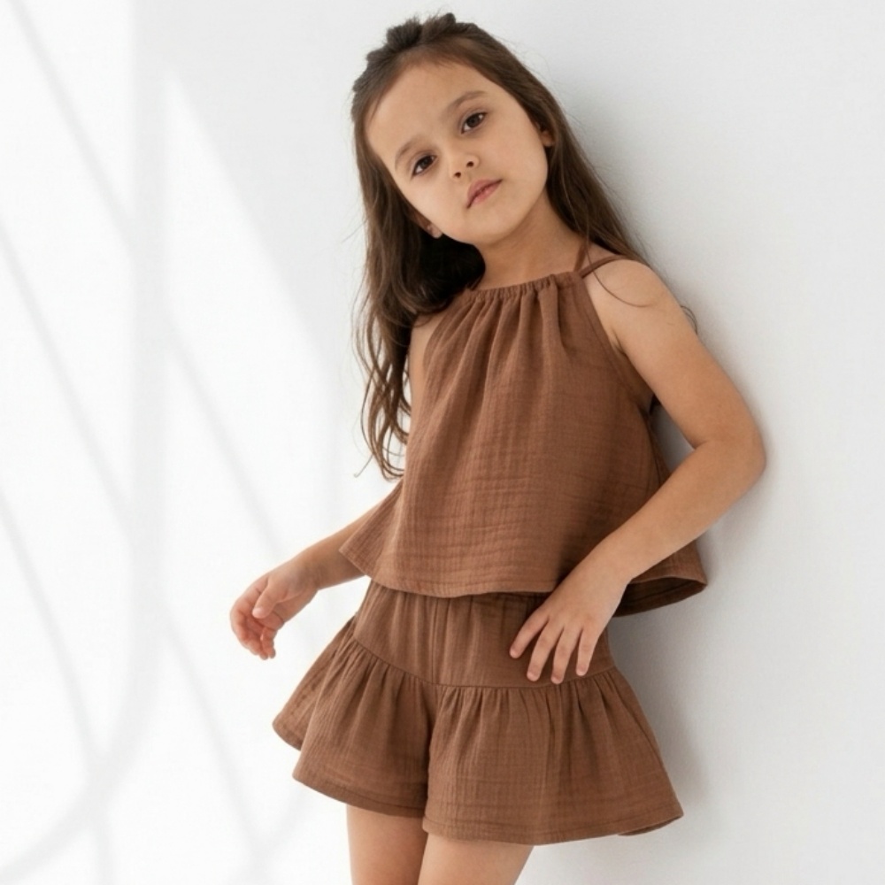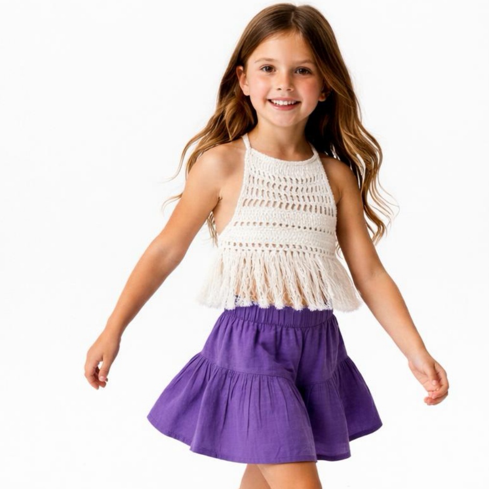 Kız Çocuk Pile Detaylı Müslin Şort