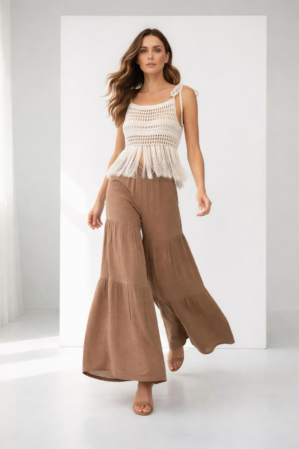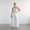 Tinnydoo’nun bohem esintiler taşıyan yaz koleksiyonunda yer alan bu iki parçalı kadın takımı, dantelin romantik dokusunu müslin pantolonun hafifliğiyle bir araya getiriyor. Günlük yaz kombinlerinden özel etkinliklere kadar her ortamda dikkat çeken bu set, doğallığı ve zarif rahatlığı sevenler için ideal.