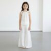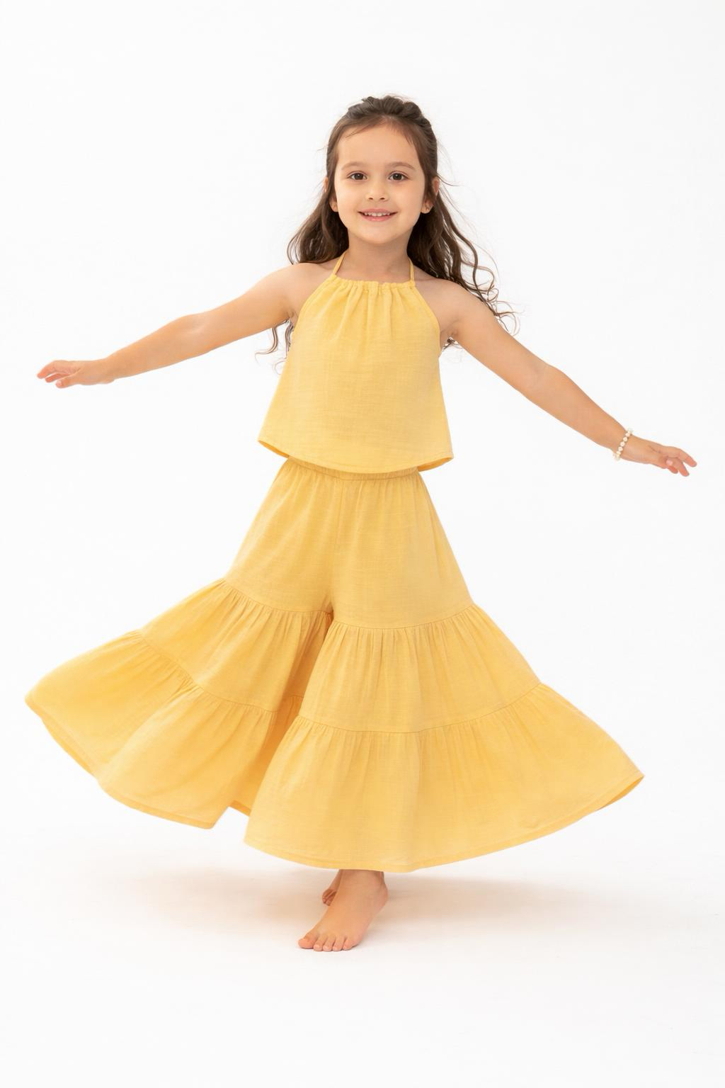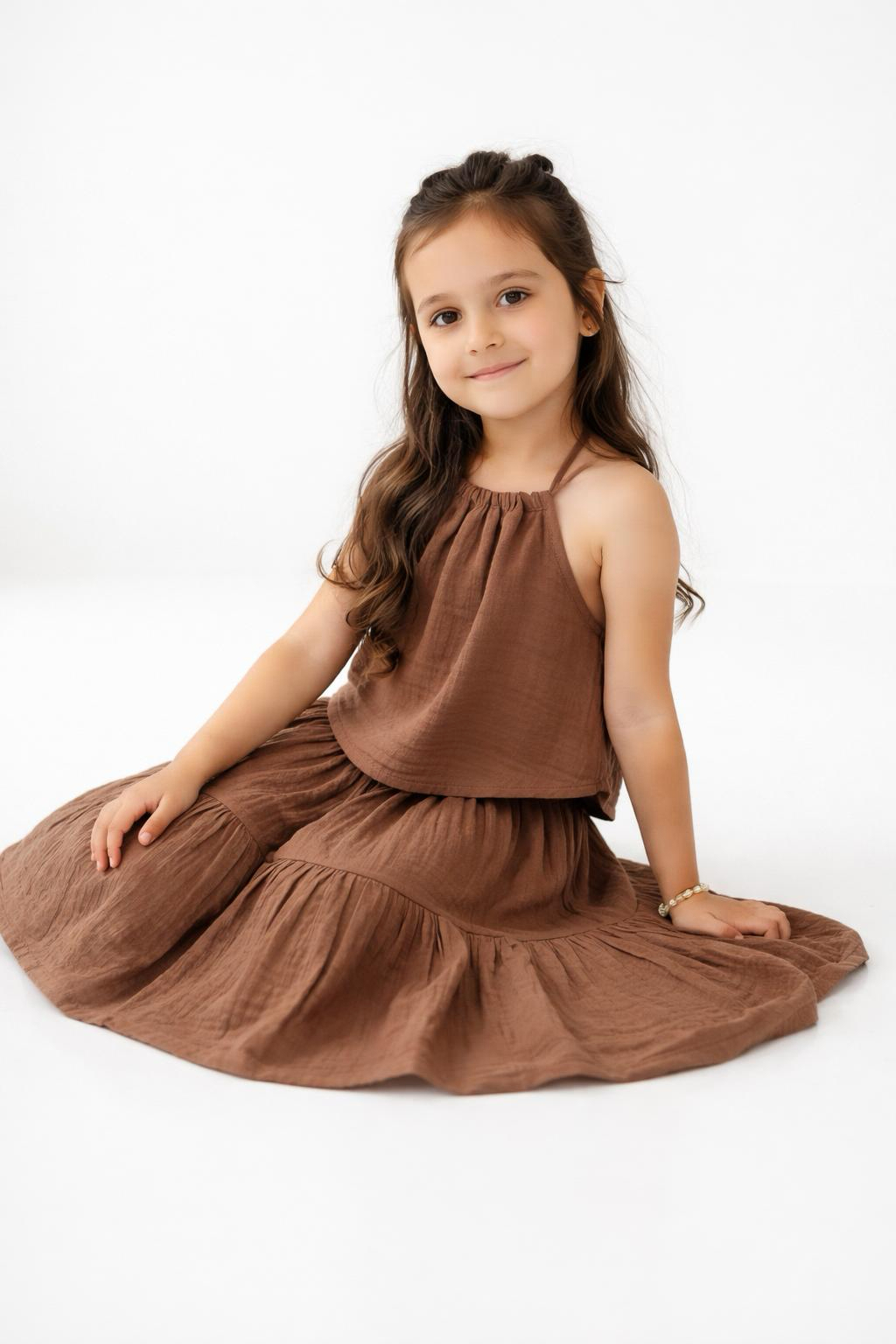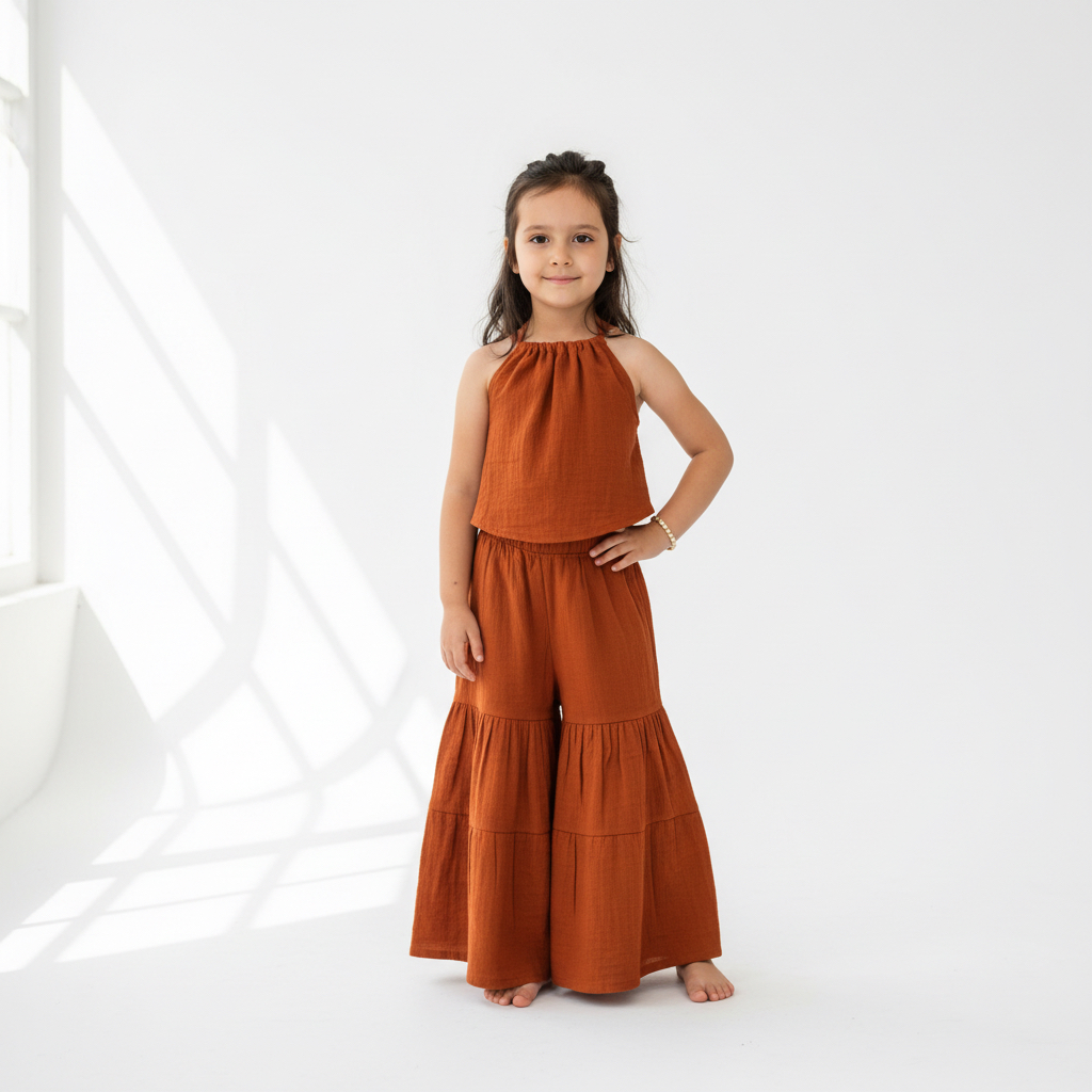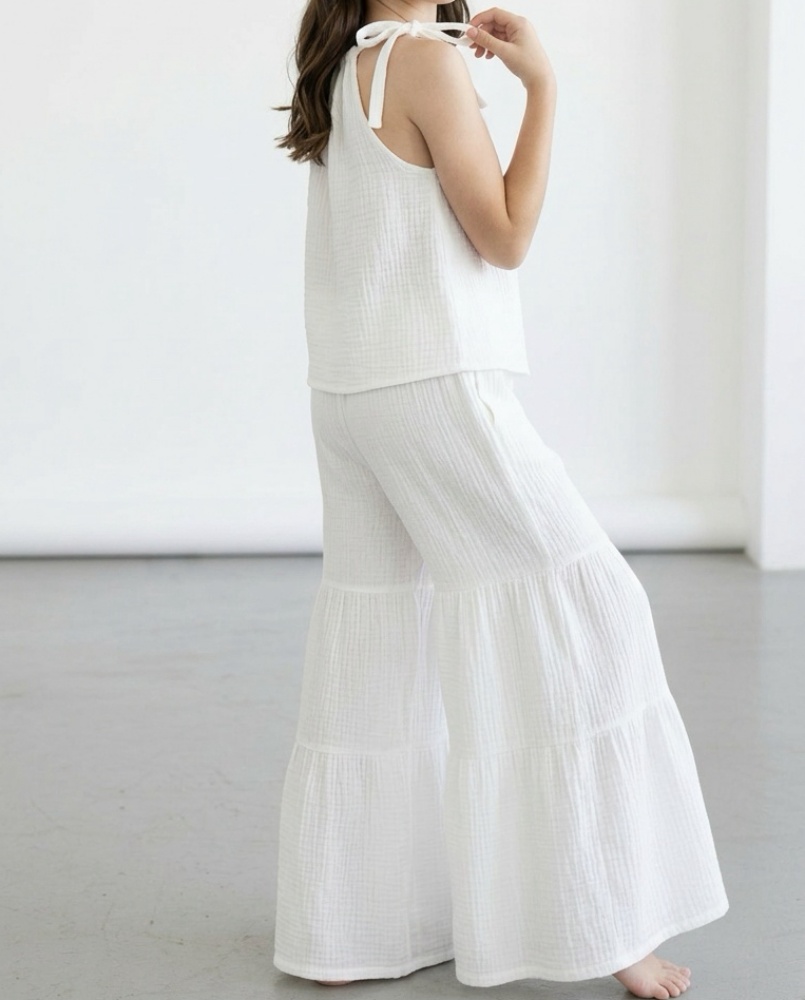 Kız Çocuk İp Askılı Müslin Bluz ve Pile Detaylı Müslin Pantolon Takımı