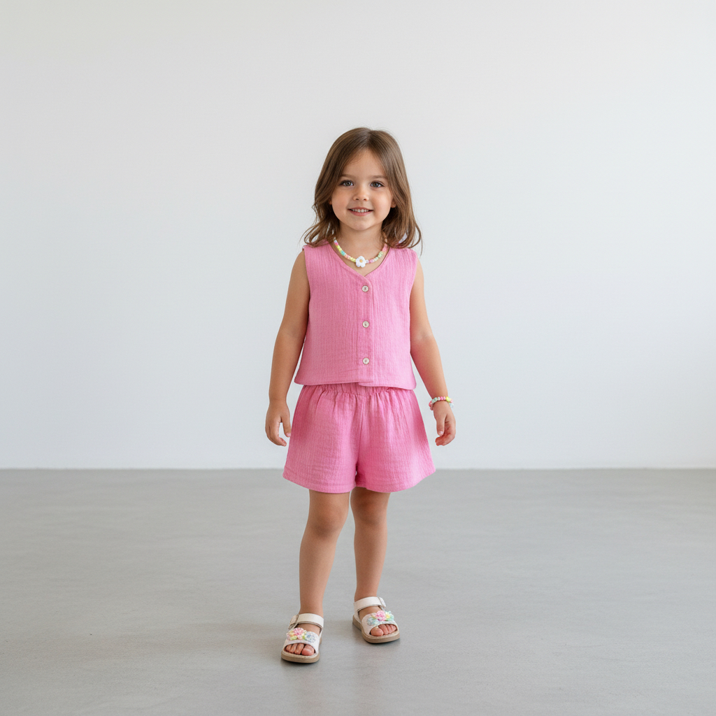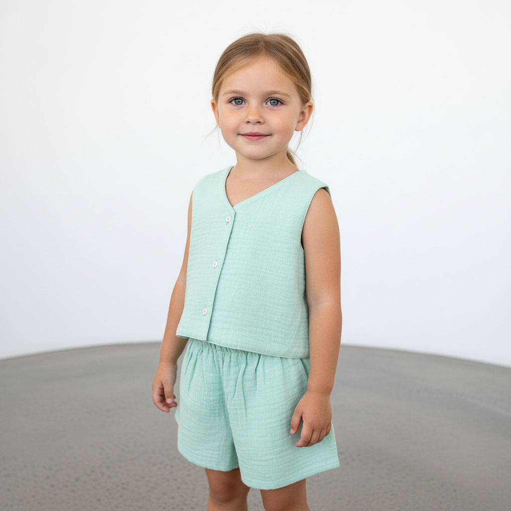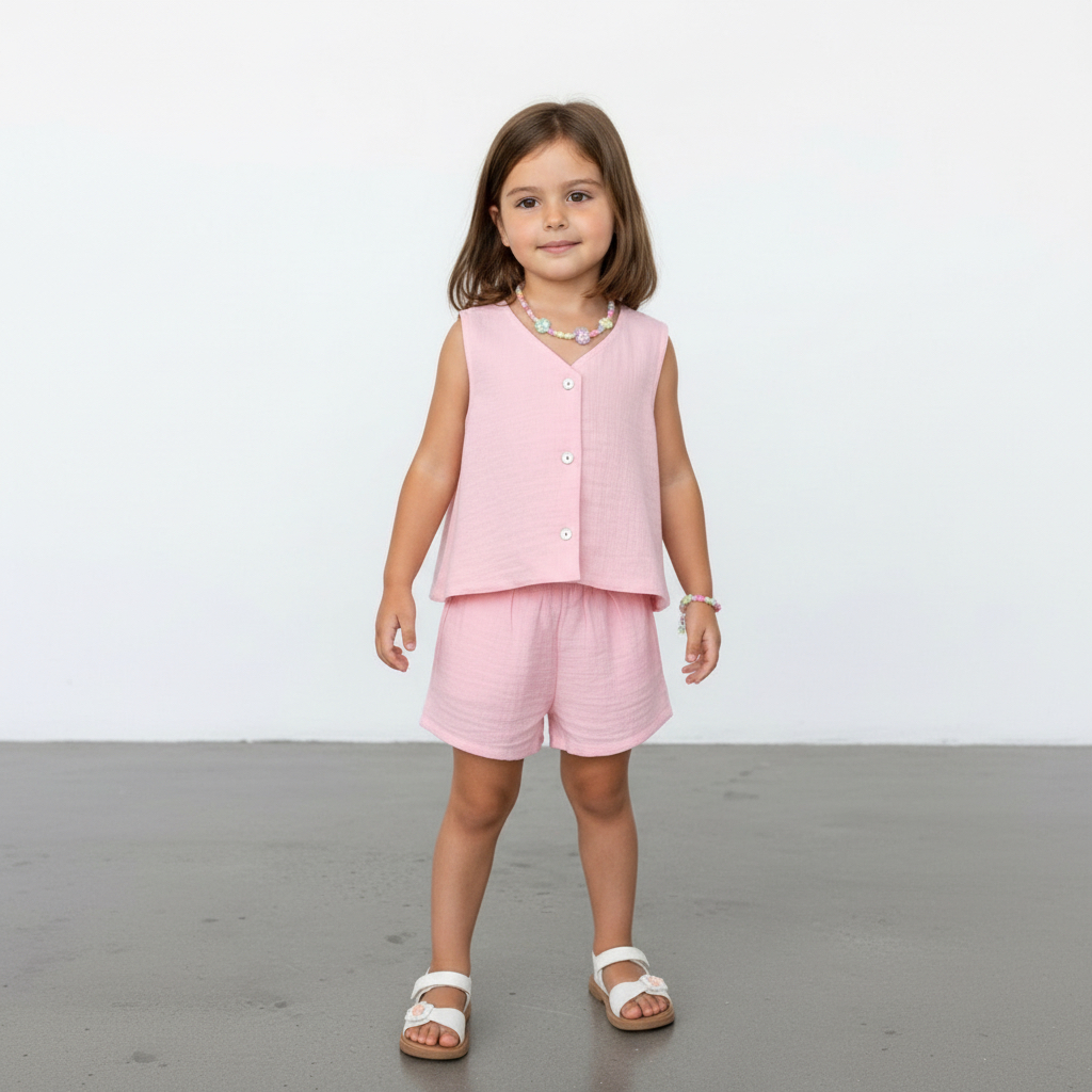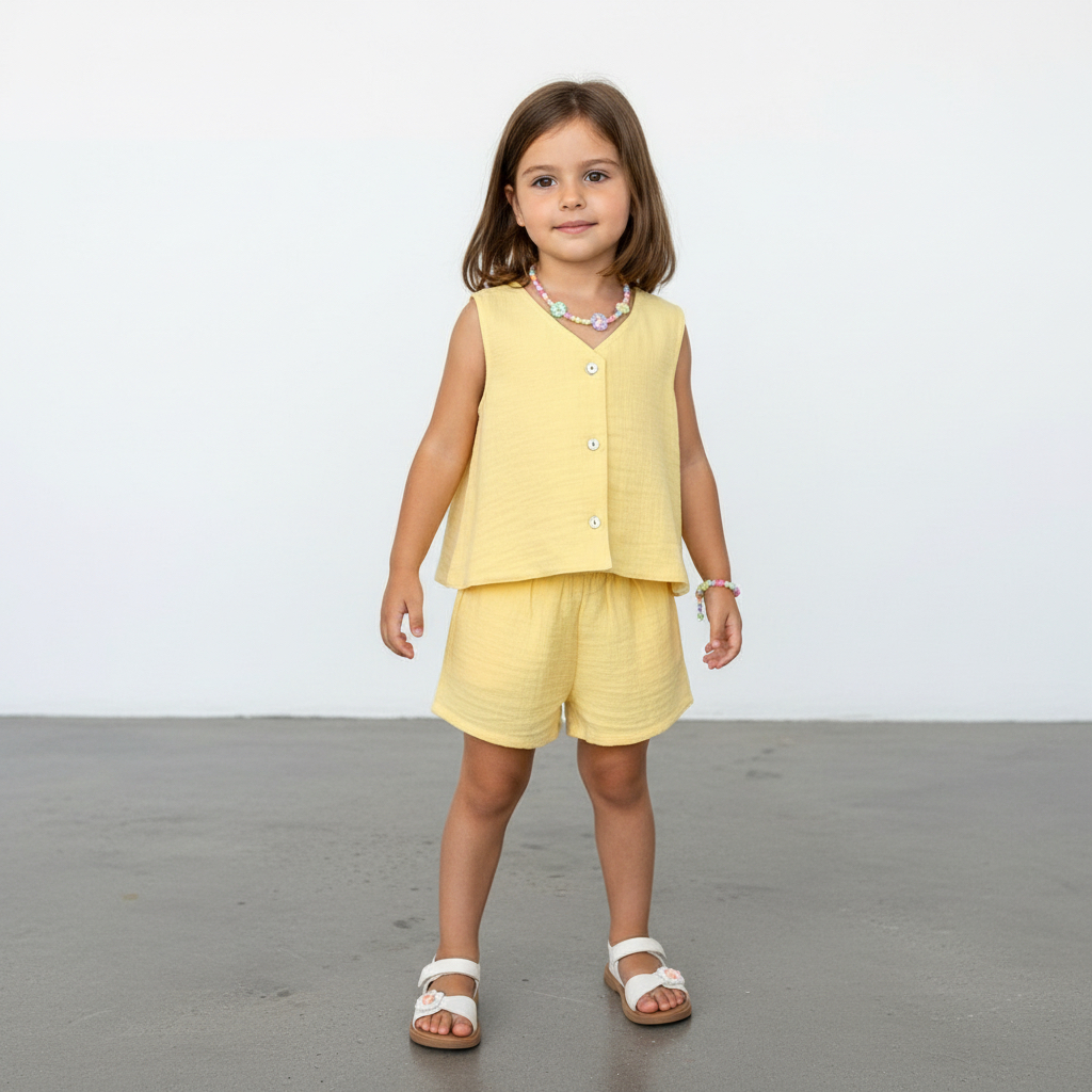 Kız Çocuk Müslin Yelek ve Şort Takımı