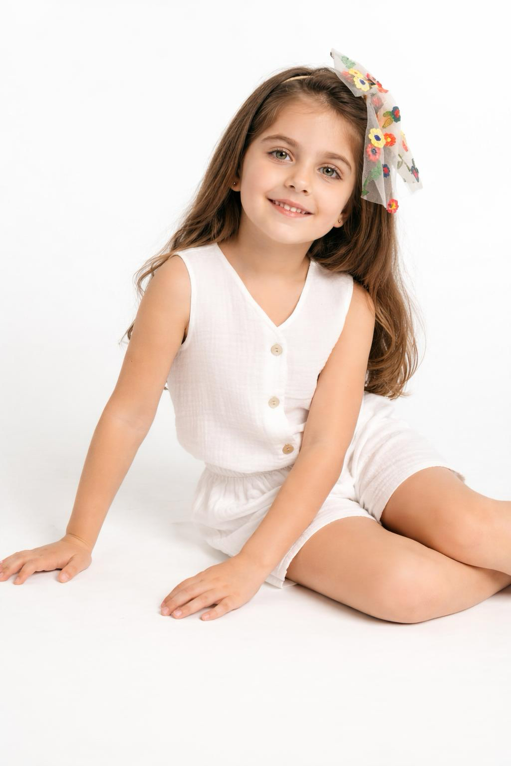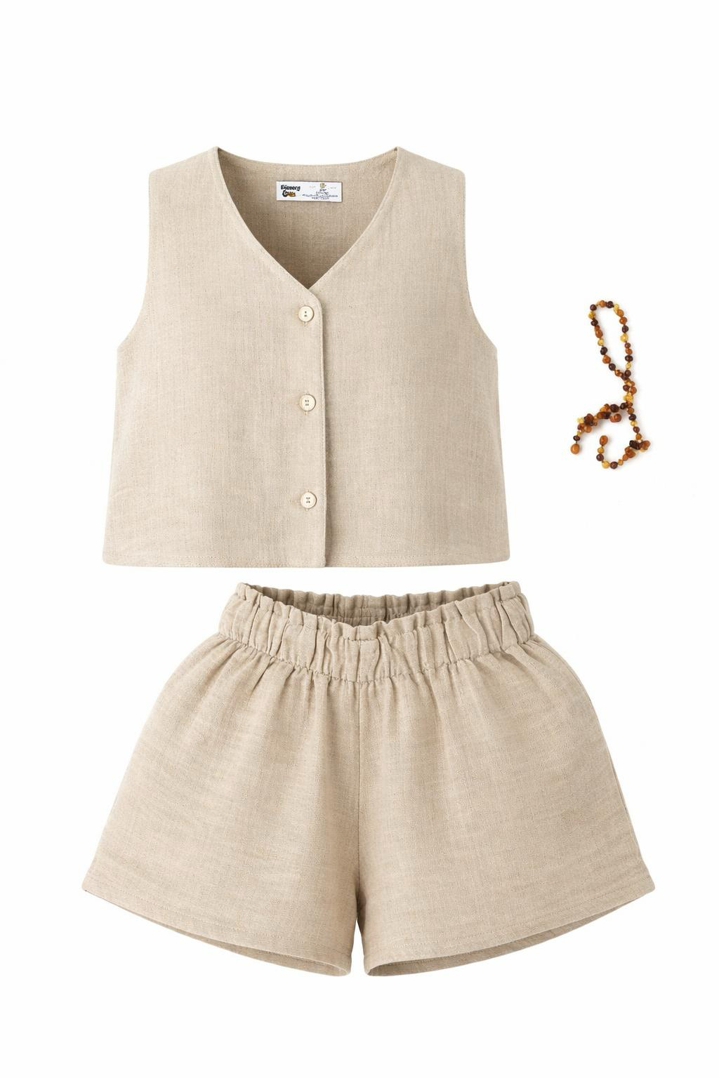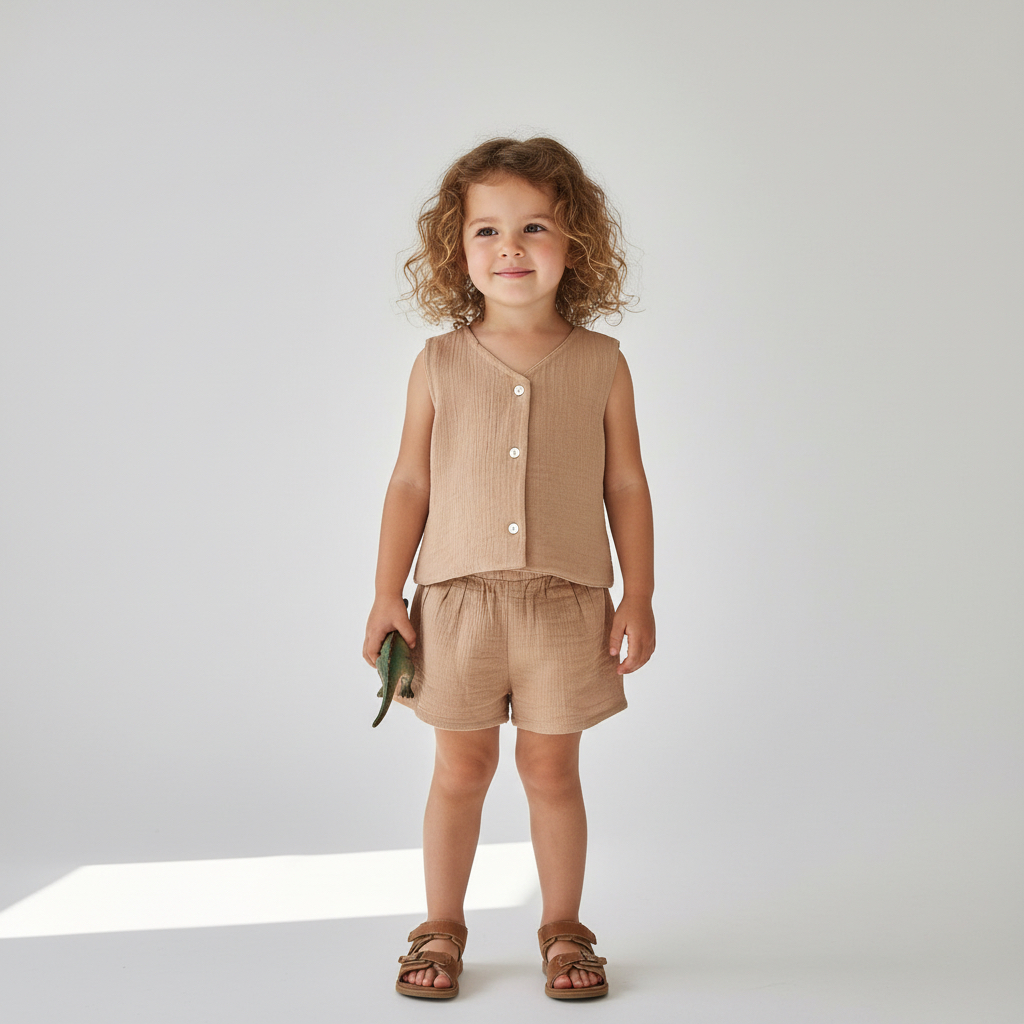 Kız Çocuk Müslin Yelek ve Şort Takımı