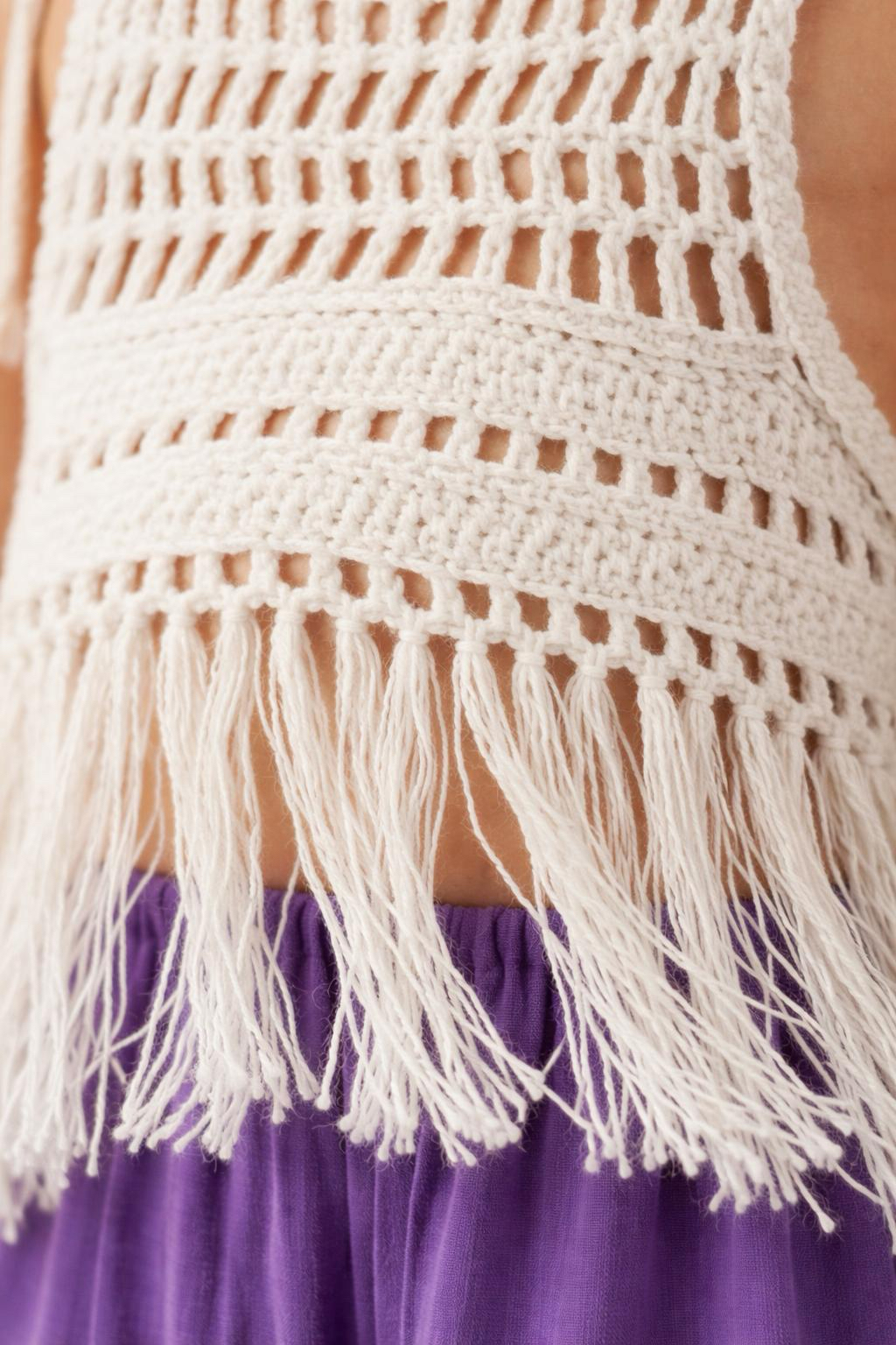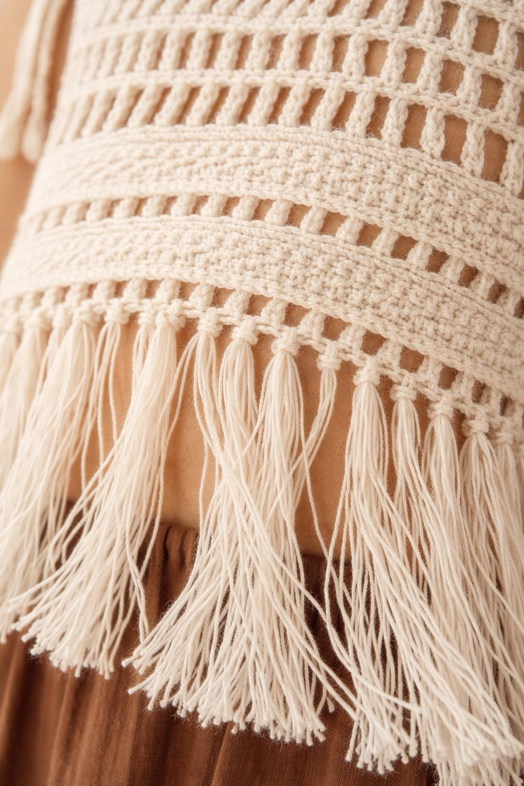 - Bluz: Ayarlanabilir ip askılı, el işi görünümlü örgü dantel yapısı ve püskülleriyle özel günlerde ve günlük kombinlerde fark yaratır.