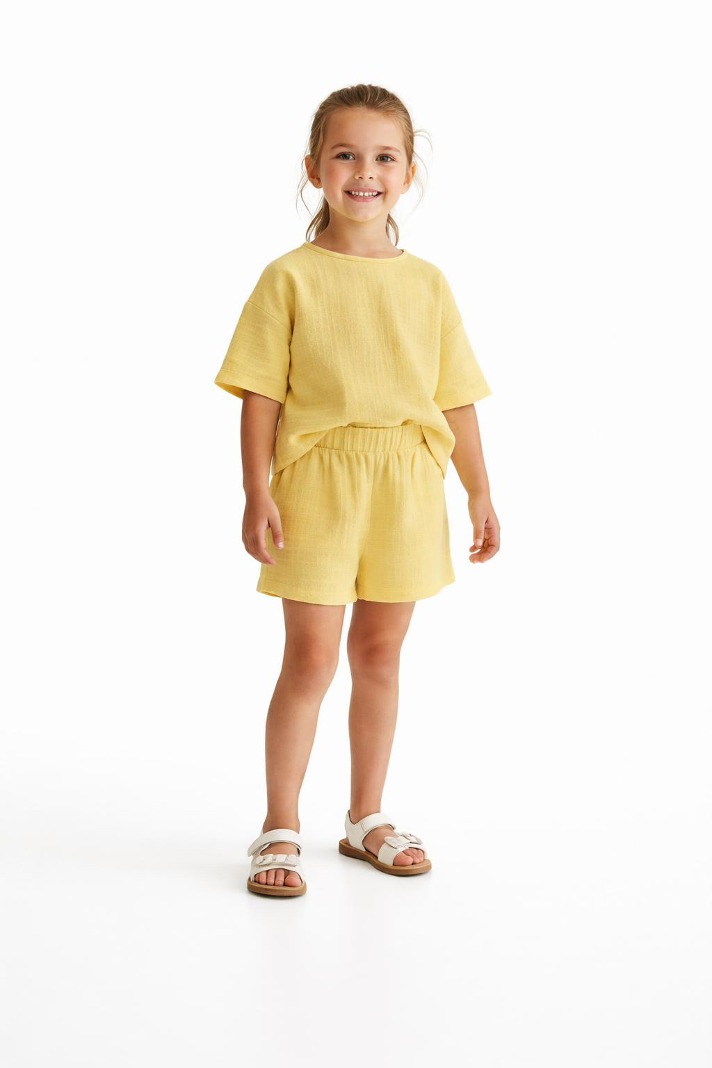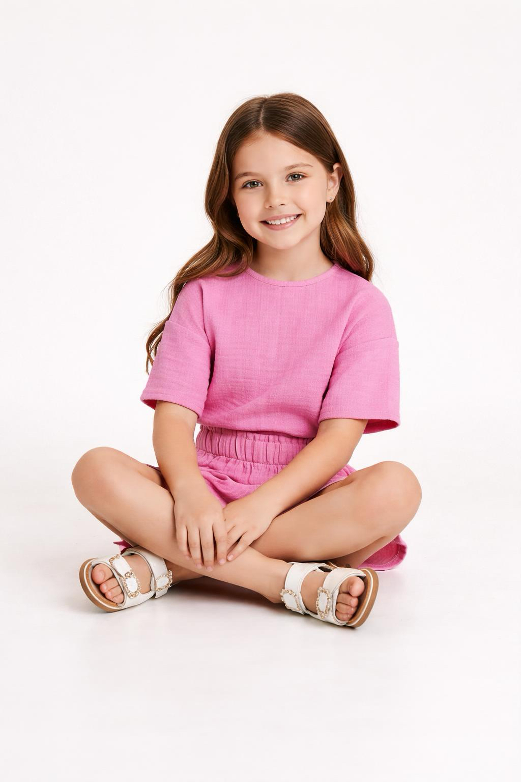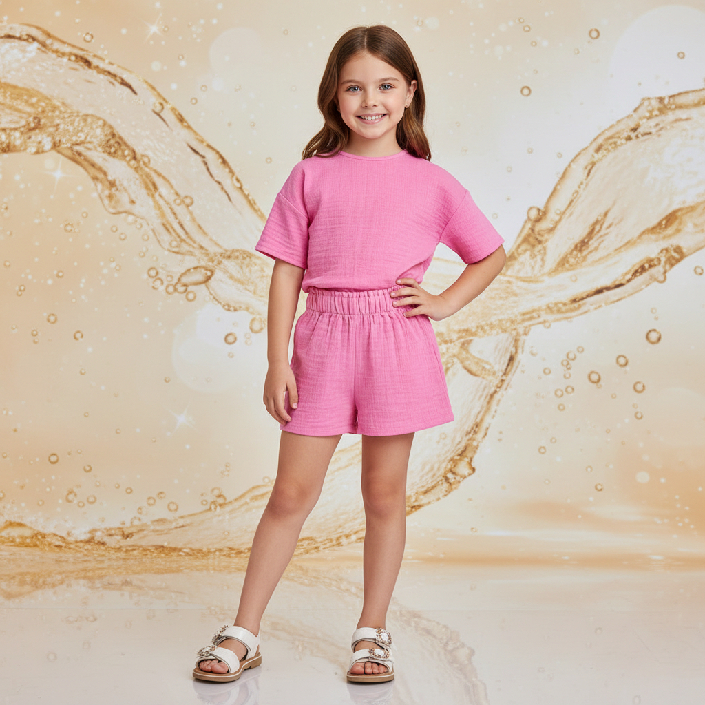 Kız Çocuk Yarım Kollu Müslin Tişört & Şort Takımı