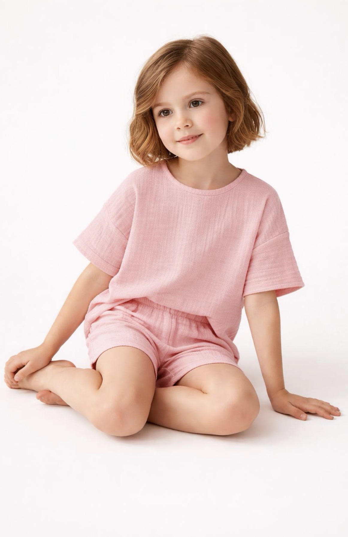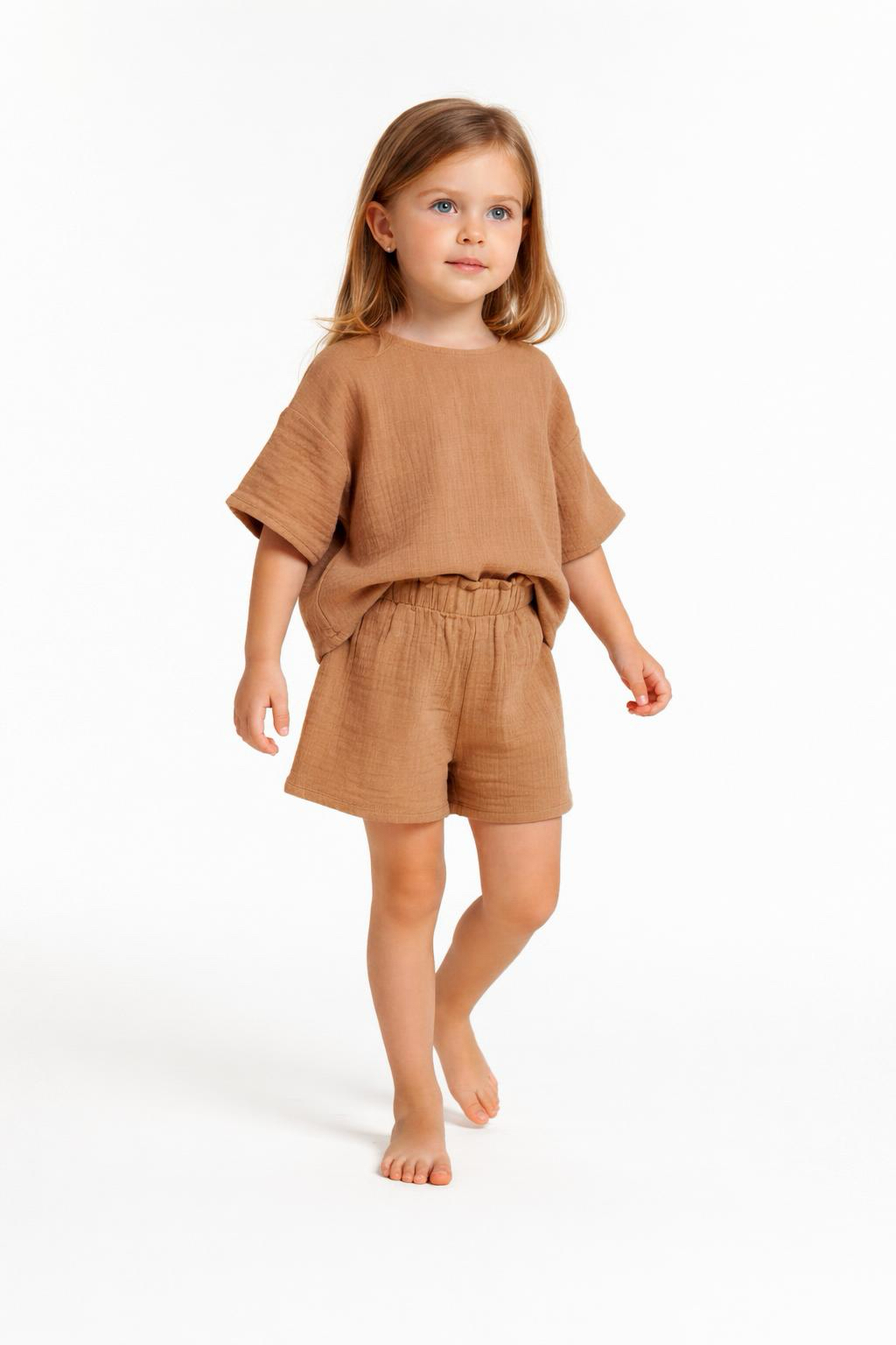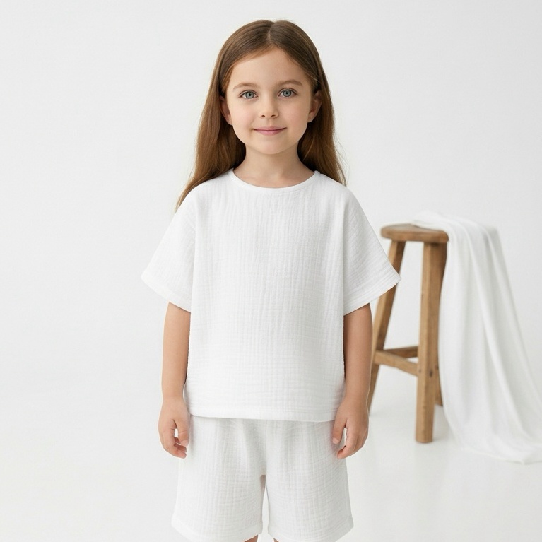 Kız Çocuk Yarım Kollu Müslin Tişört & Şort Takımı