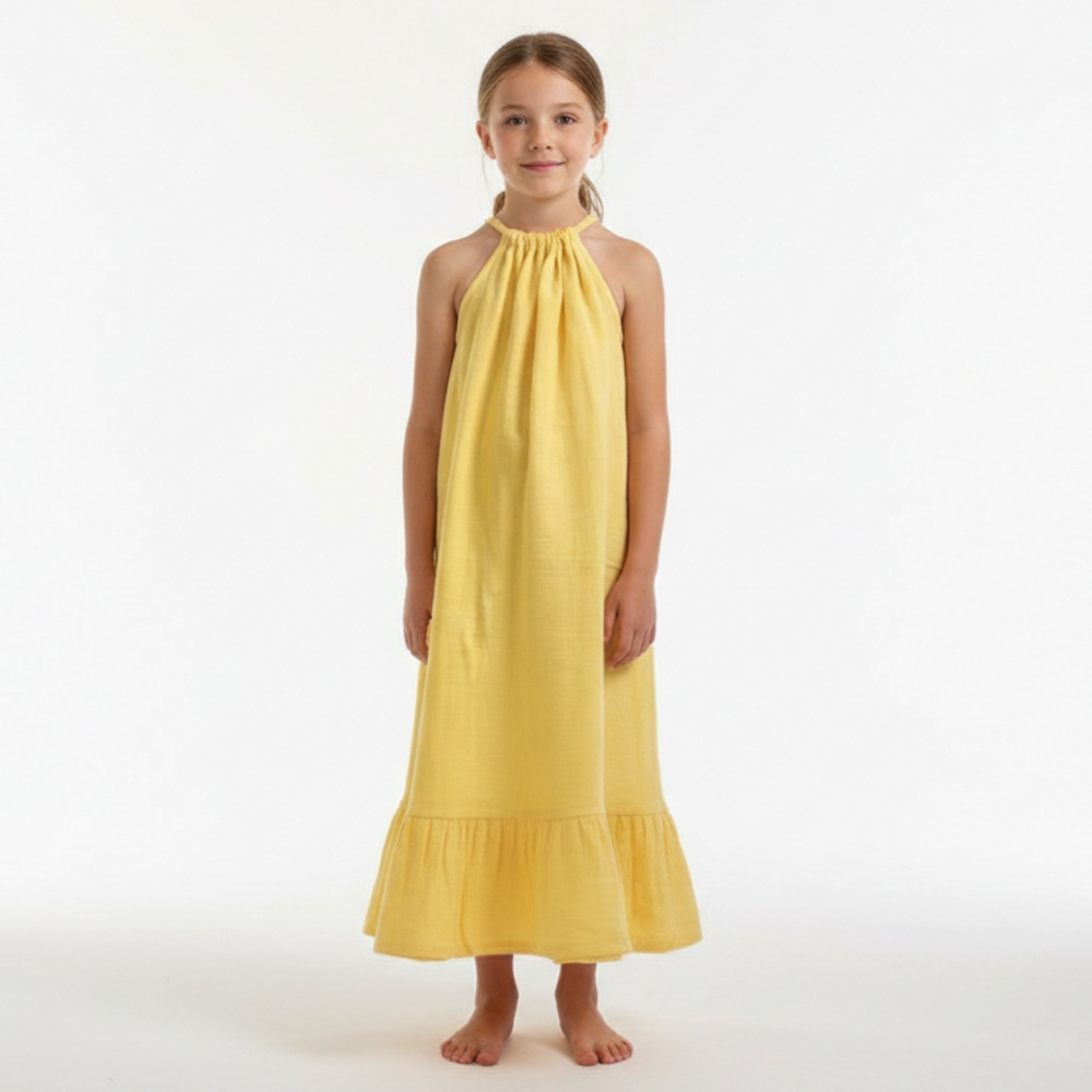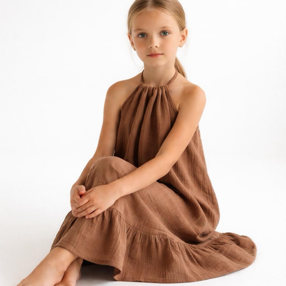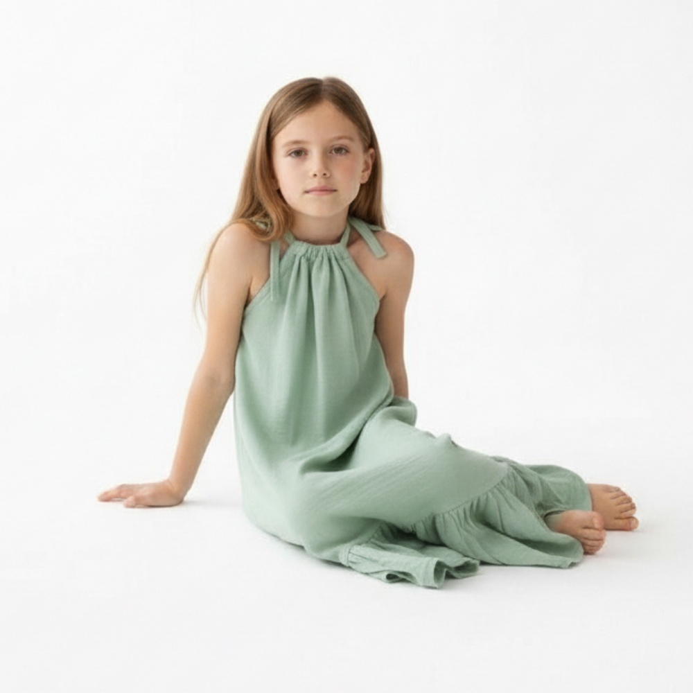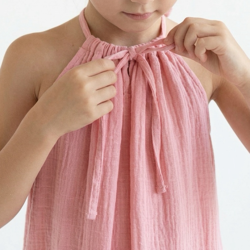 Kız Çocuk Ayarlanabilir Askılı Müslin Elbise