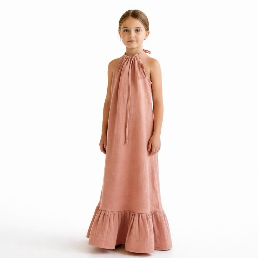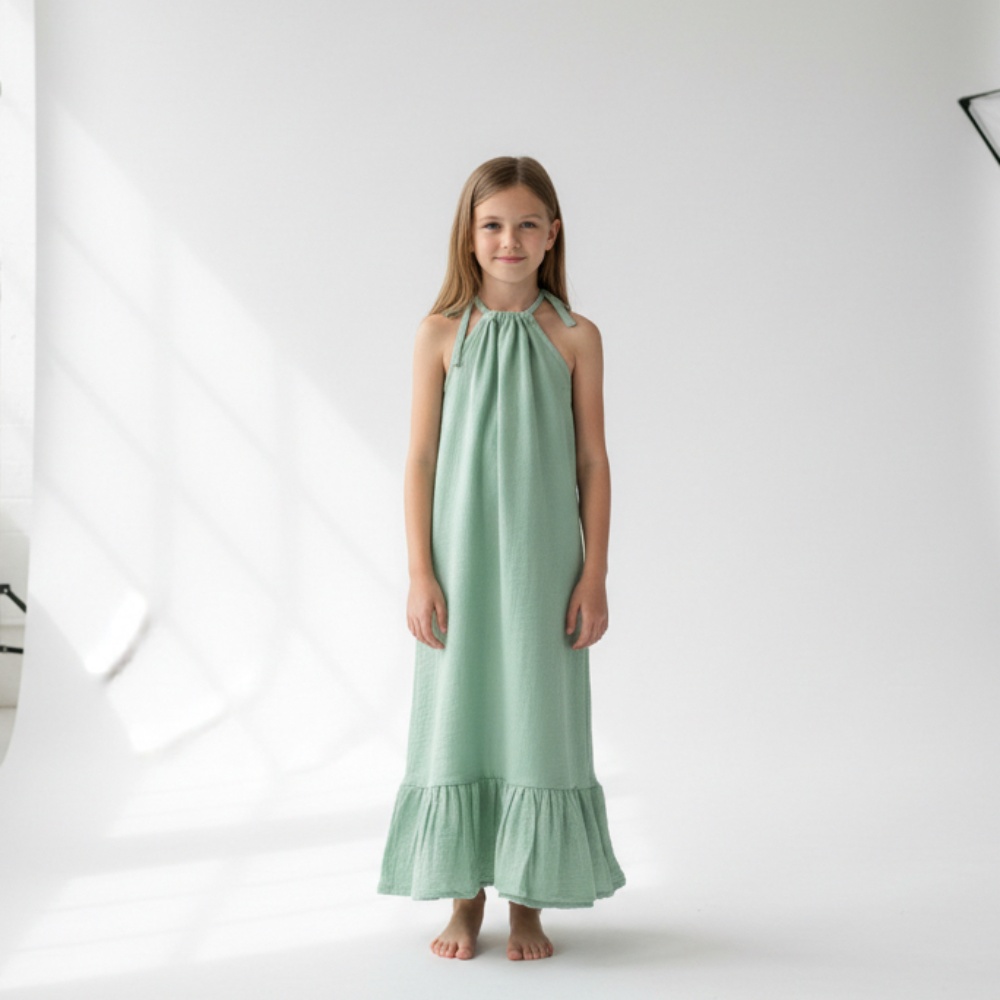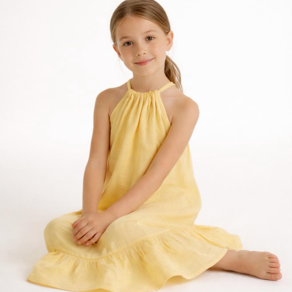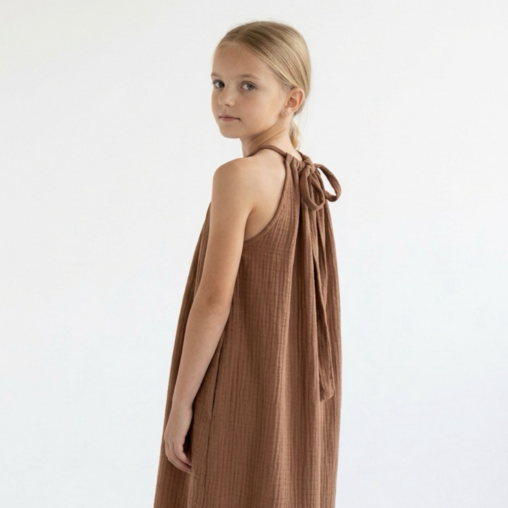 Kız Çocuk Ayarlanabilir Askılı Müslin Elbise