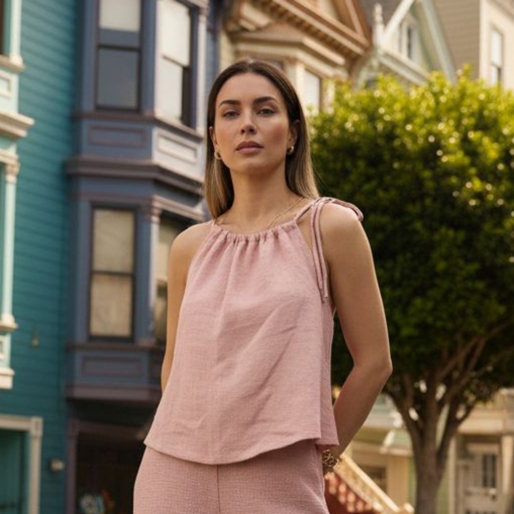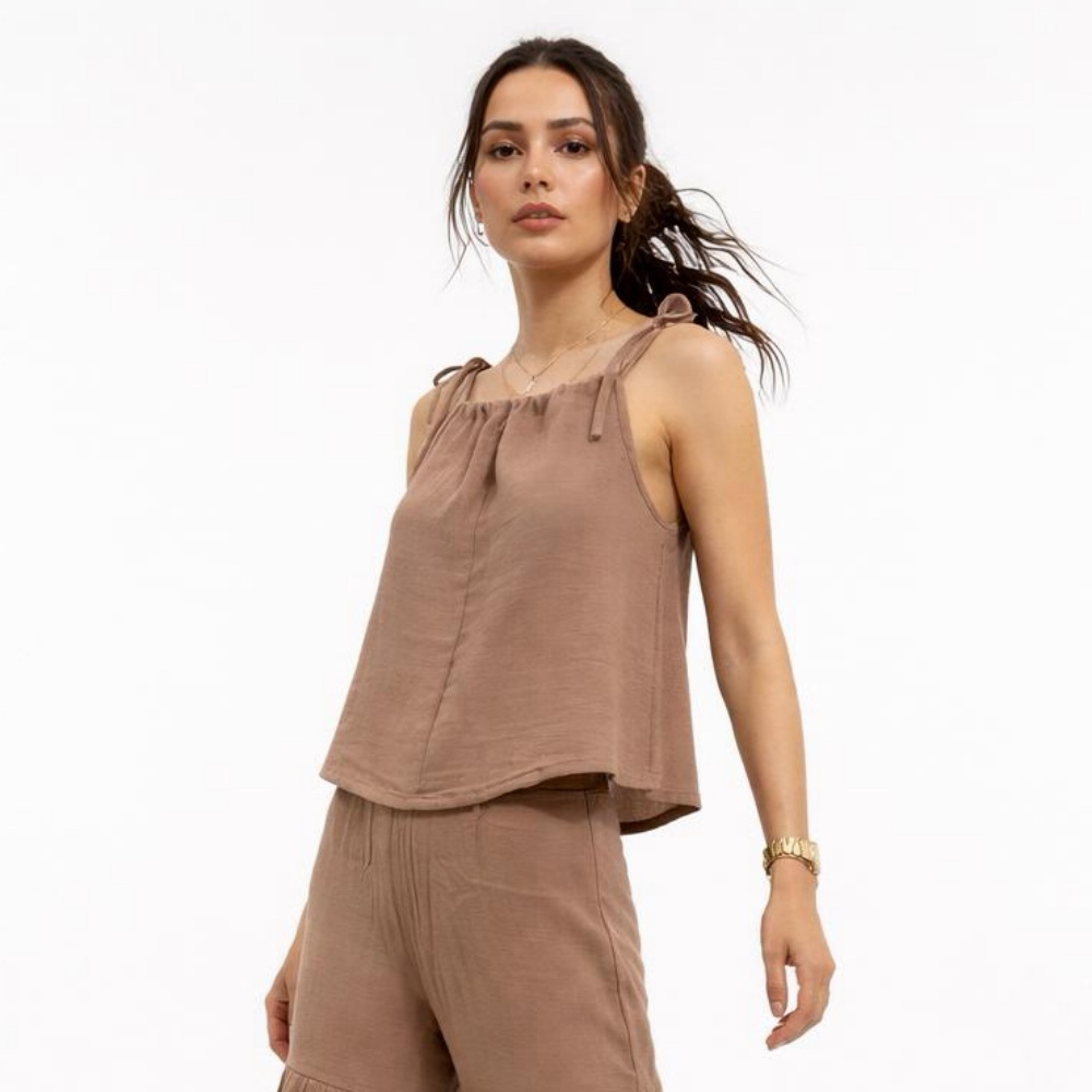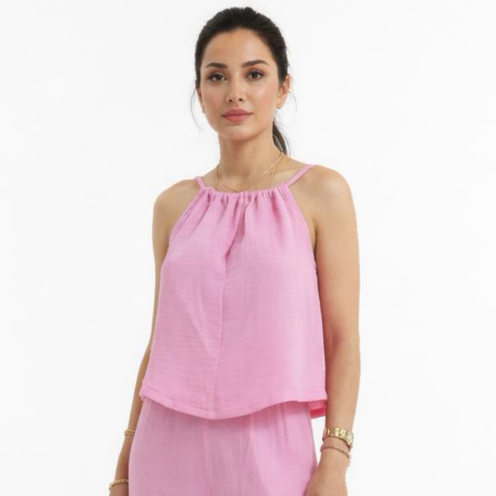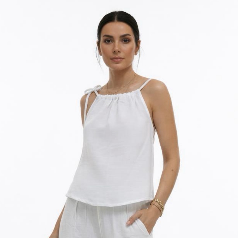 Ürün Açıklaması: Ayarlanabilir İp Askılı, Boyundan Büzgülü , Kolsuz, Astarsız