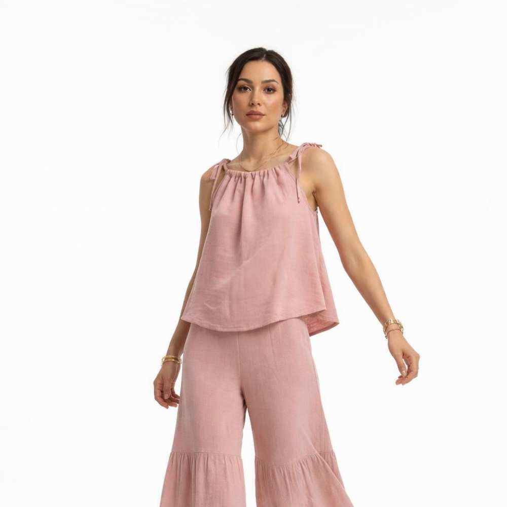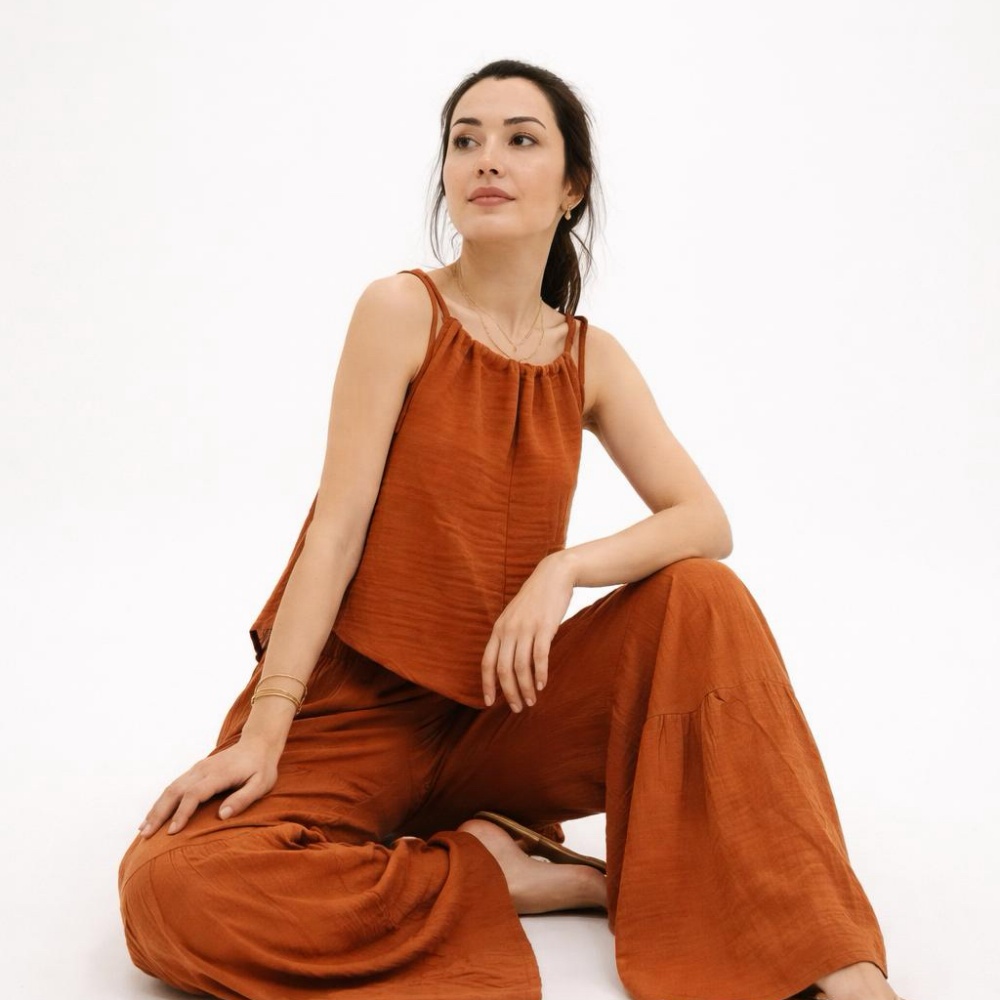 - Doğal görünüm: Kırışık dokusu kumaşın doğallığının bir parçasıdır ve ütü gerektirmez.