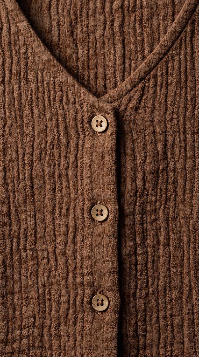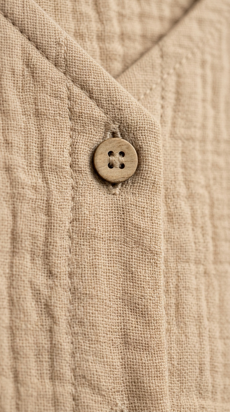 • Doğal görünüm: Kırışık dokusu kumaşın doğallığının bir parçasıdır ve ütü gerektirmez.