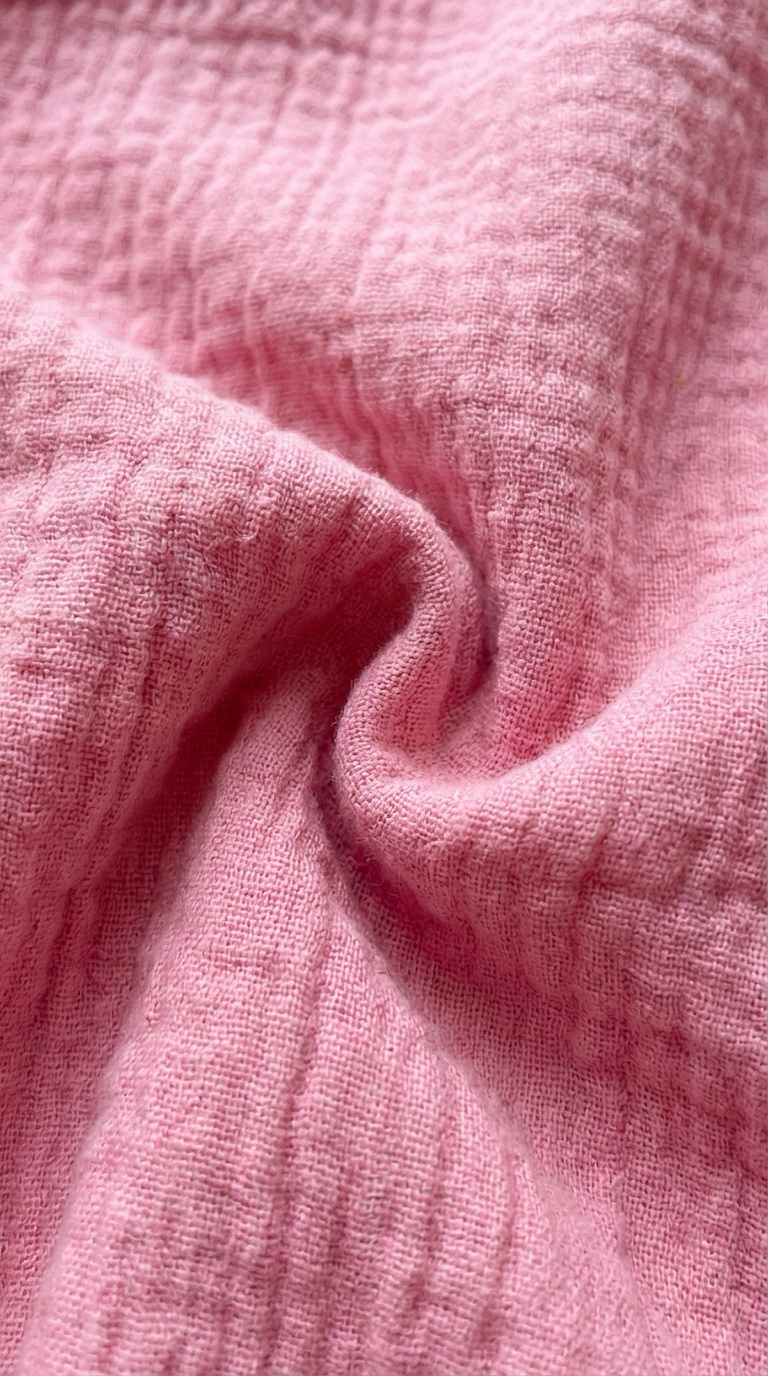 Müslin kumaşlar kırışmaya meyillidir ve bu kırışıklık kumaşın estetik dokusunun bir parçasıdır. Bu yüzden her ürün benzersizdir ve doğal formunda kullanılabilir.