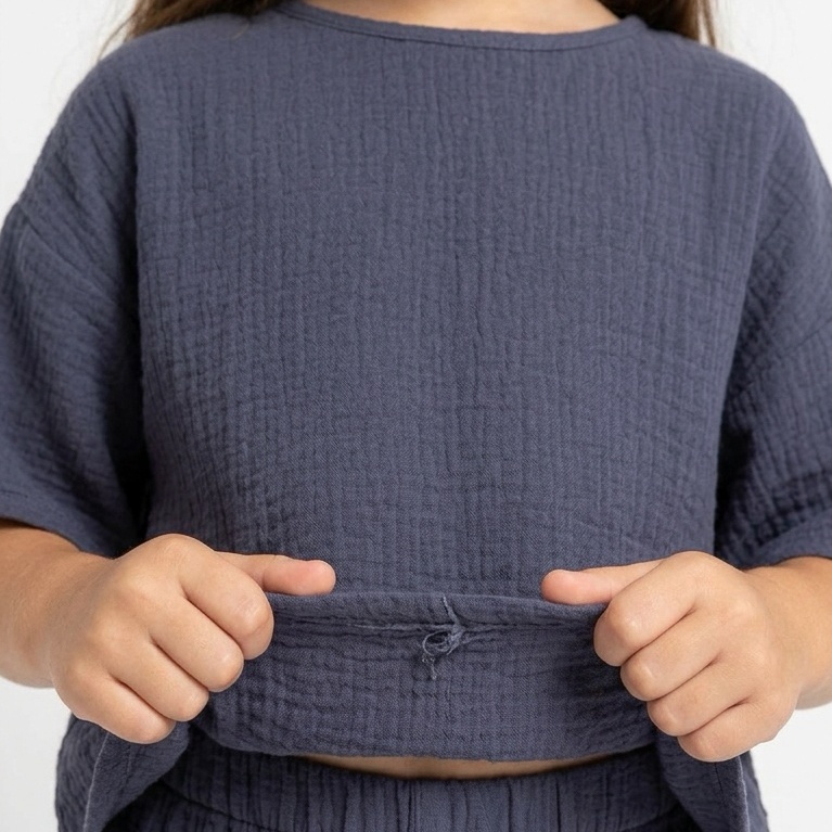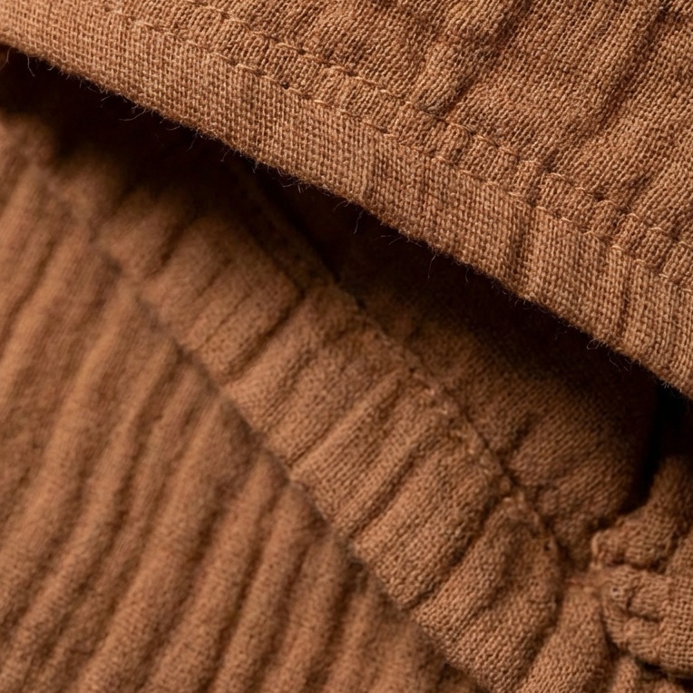 - Doğal görünüm: Kırışık dokusu kumaşın doğallığının bir parçasıdır ve ütü gerektirmez.