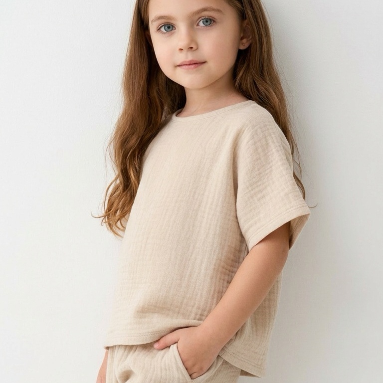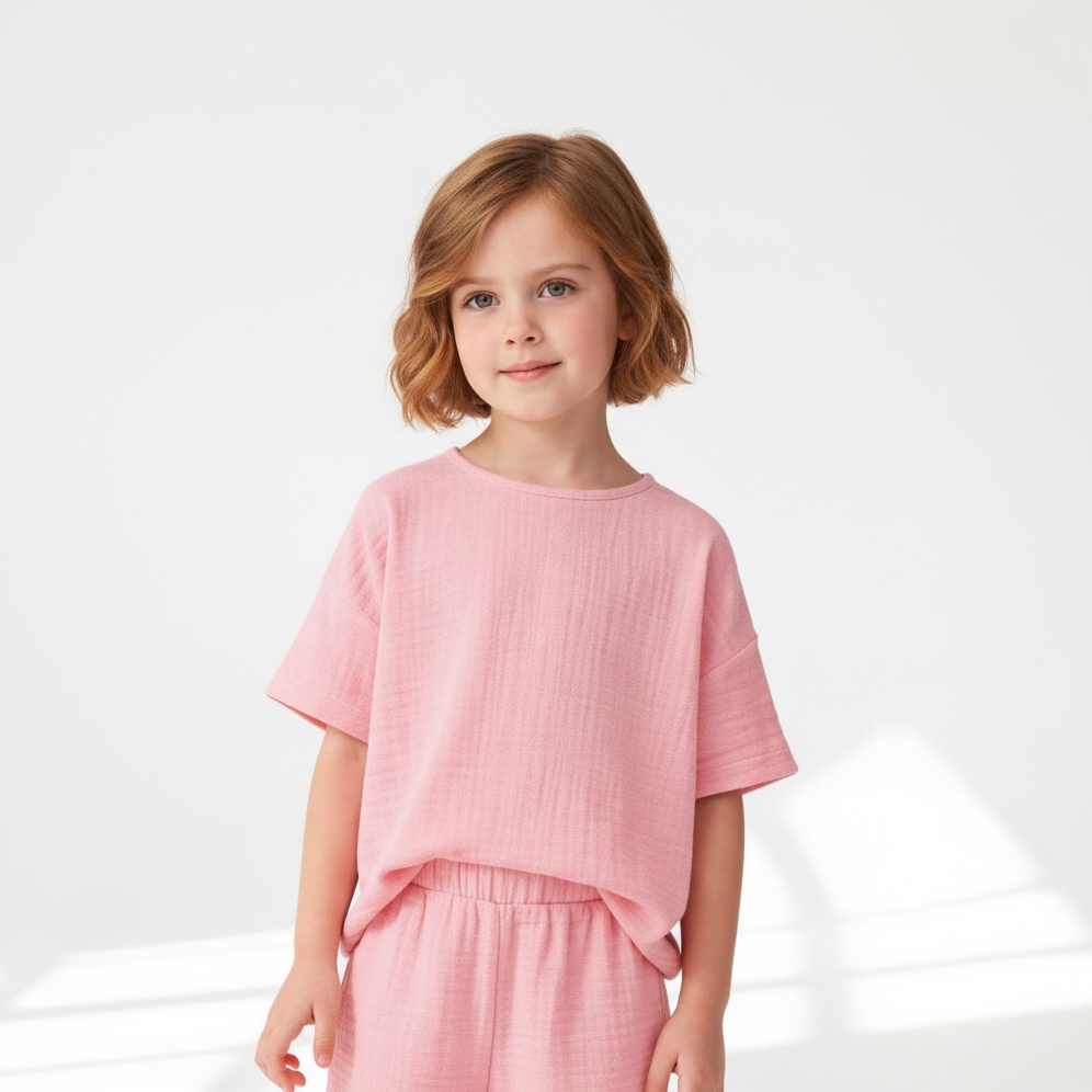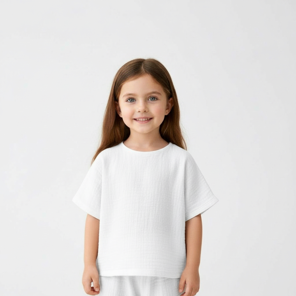 Kız – Erkek Çocuk Yarım Kollu Müslin Tişört